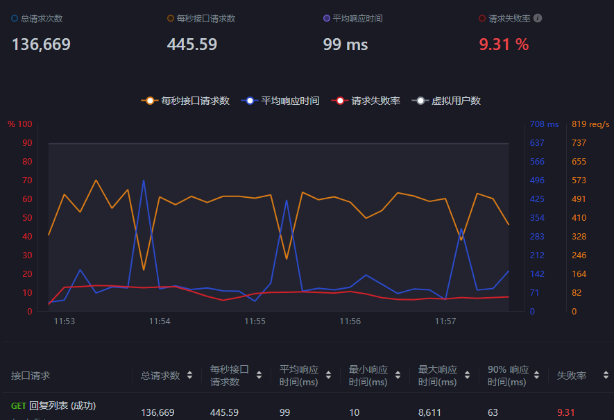 500线程 每个线程循环20次请求
