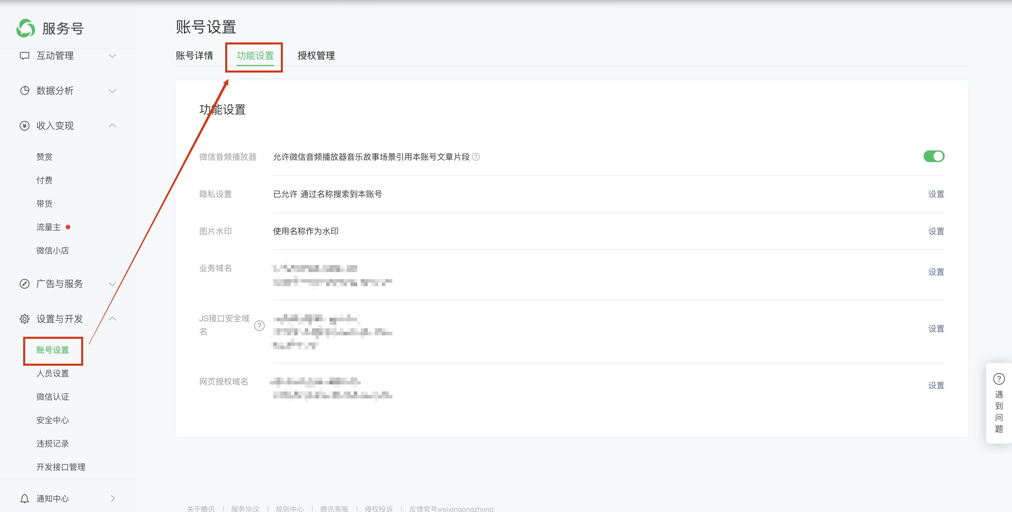 备忘。。。微信服务号的设置拆得乱七八糟的,经常找不到设置在哪里